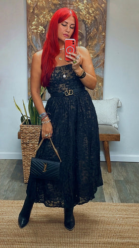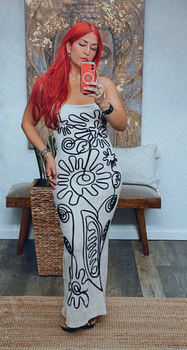 FLORAL EMBROIDERED STRAPLESS DRESS